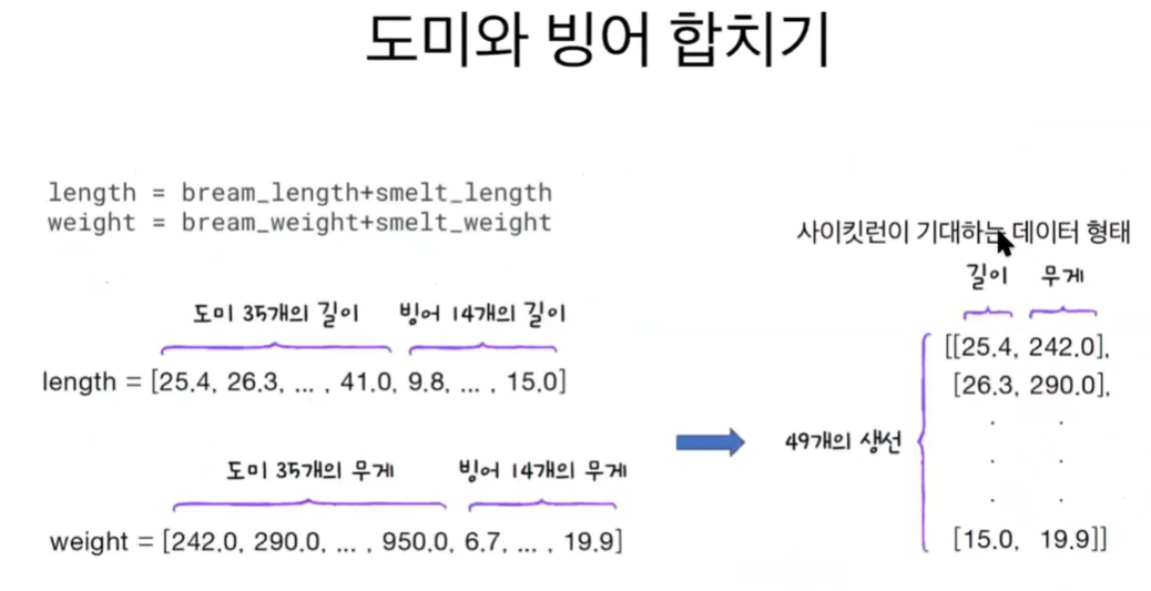 도미 + 빙어 하나의 파이썬 리스트로