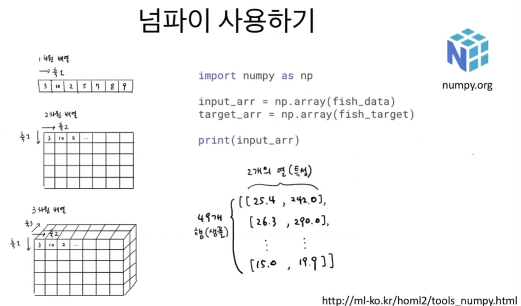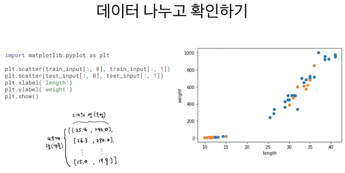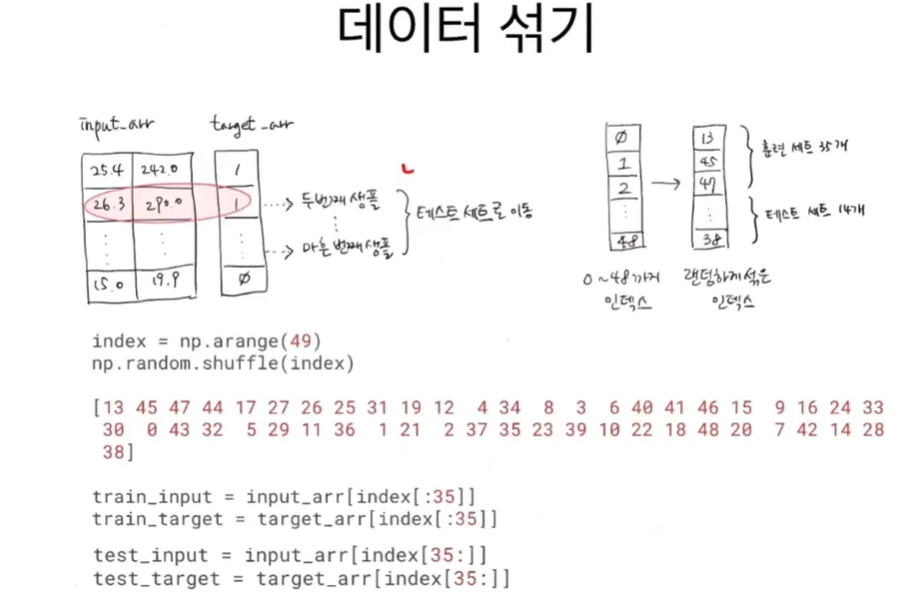 객체 초기화, train_input, train_target / test_input, test_target