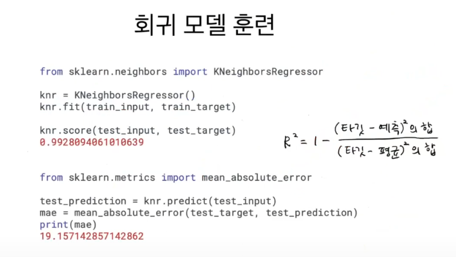 회귀 - 농어의 무게를 예측 (임의의 숫자를 예측)