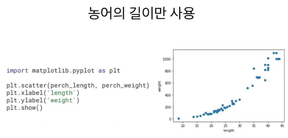 농어 데이터 산점도로 표현
