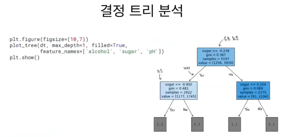 - 결정 트리 시각화: plot_tree를 사용하여 결정 트리의 구조를 시각화