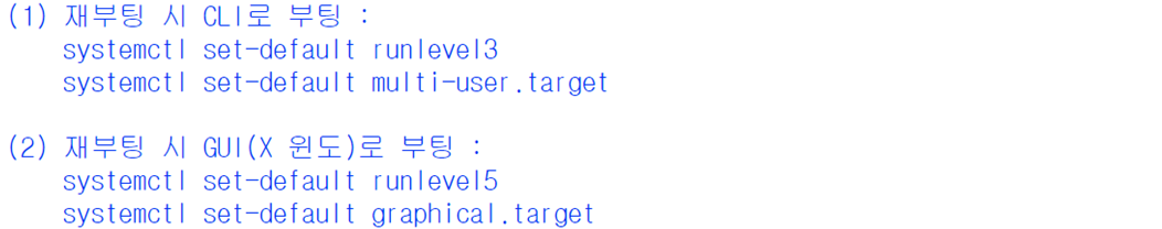 | blkid | (block id) 블록의 UUID | blkid/dev/sda1 | |