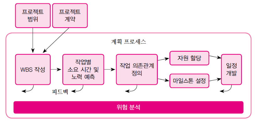 개발 프로세스를 이루는 소작업(activity)을 파악하고 순서와 일정을 정하는 작업