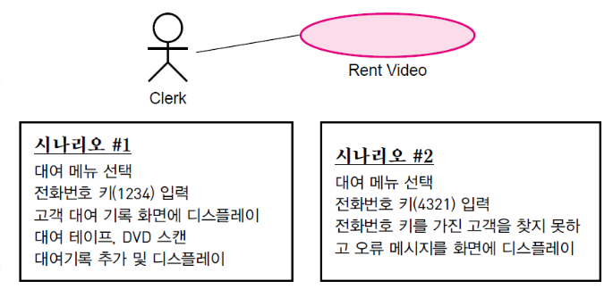 사용사례 - 엑터의 입장에서 본 시스템의 동작(외부동작) / 엑터가 볼 수 있는 결과를 내는 이벤트의 집합, 다른 사용 사례 가동 가능