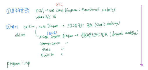 동적 모델링: 클래스들의 상호작용이나 클래스의 상태 변화 등 시스템 내부 동작을 모델링