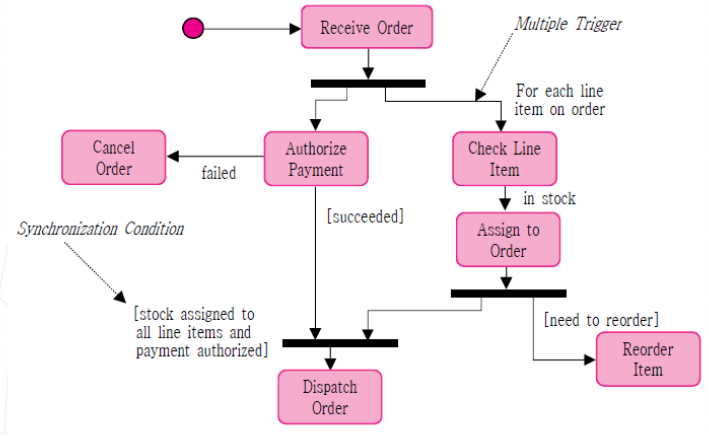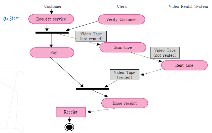 액티비티(activity) 다이어그램 : 절차나 작업의 흐름을 나타낸 것