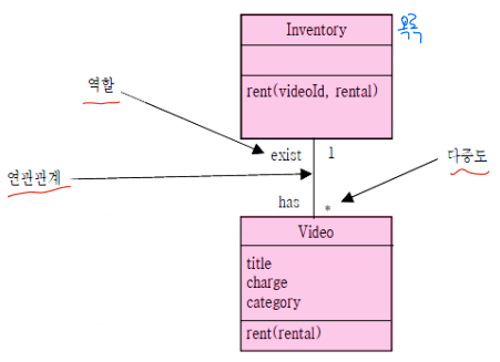 연관(association): 어떤 클래스의 인스턴스가 작업을 수행하기 위하여 다른 클래스를 알아야 함