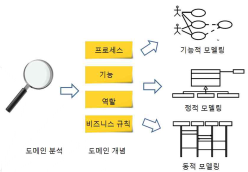 중요한 도메인 개념과 특성, 관계를 파악 -> 다이어그램으로 정형화
