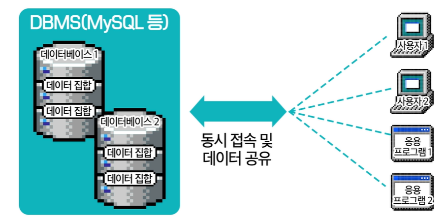 응용 프로그램과 DB 사이의 중재 역할, 데이터를 다수가 공유할 수 있게 관리하는 시스템