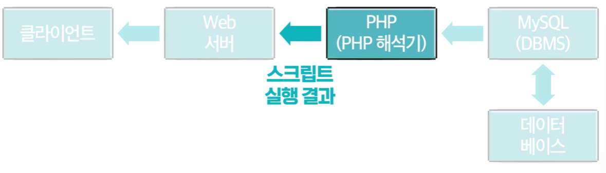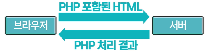 - PHP로 작성된 코드를 HTML 소스 문서 안에 삽입 -> PHP 기능이 있는 Web 서버에서 해당 코드 인식 -> 작성자가 원하는 Web 페이지 생성