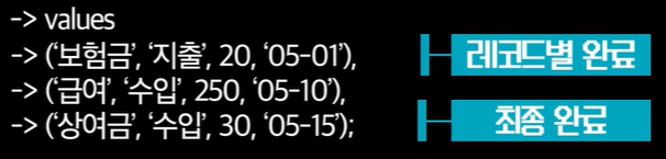 ex) 5월 1일 20원을 지출하여 보험료를 납부한 내용을 DB에 입력하고자 할 경우