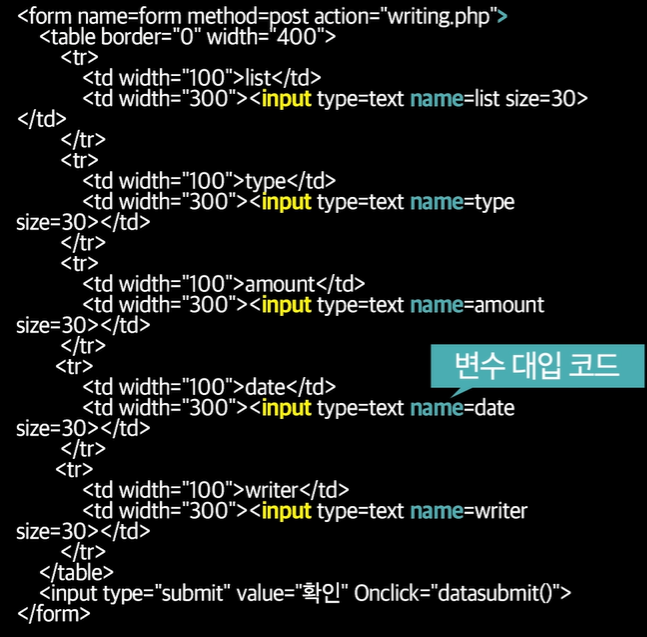 - INPUT 태그를 이용한 입력창으로 구성됨