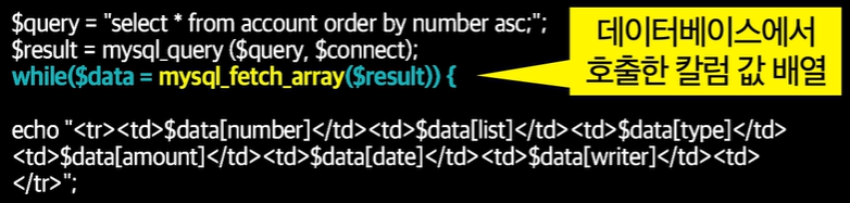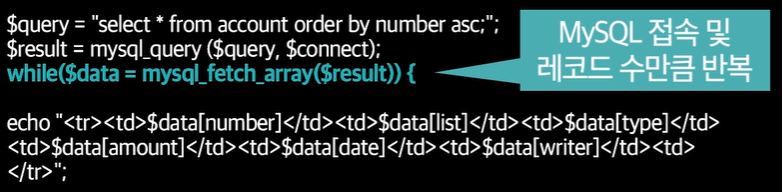 MySQL 데이터 출력 Web 페이지 소스 분석