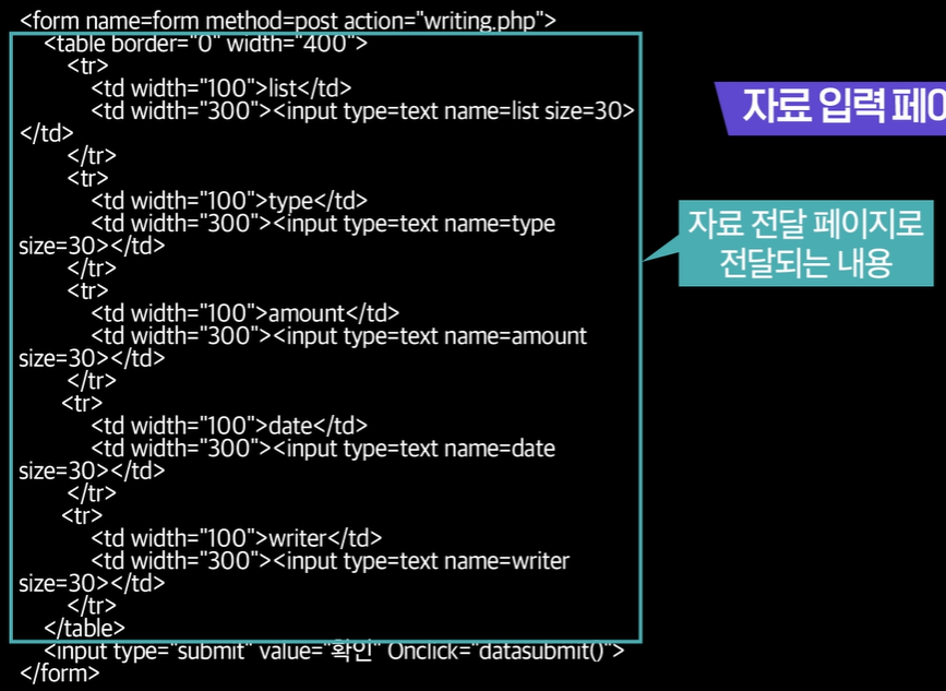 자료 입력 페이지 -> 자료 전달 페이지 -> MySQL 처리