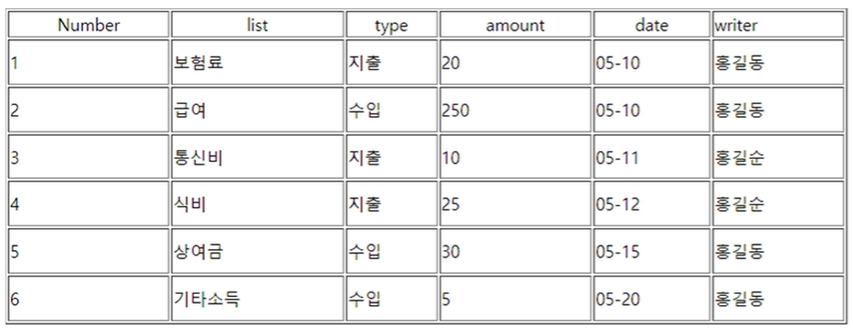 - MySQL DB에 저장되어 있는 테이블의 자료 중 필요한 항목을 Web 출력함
