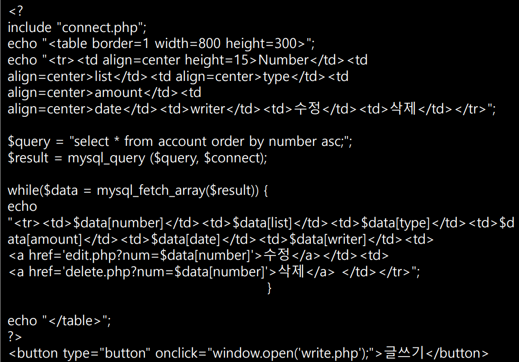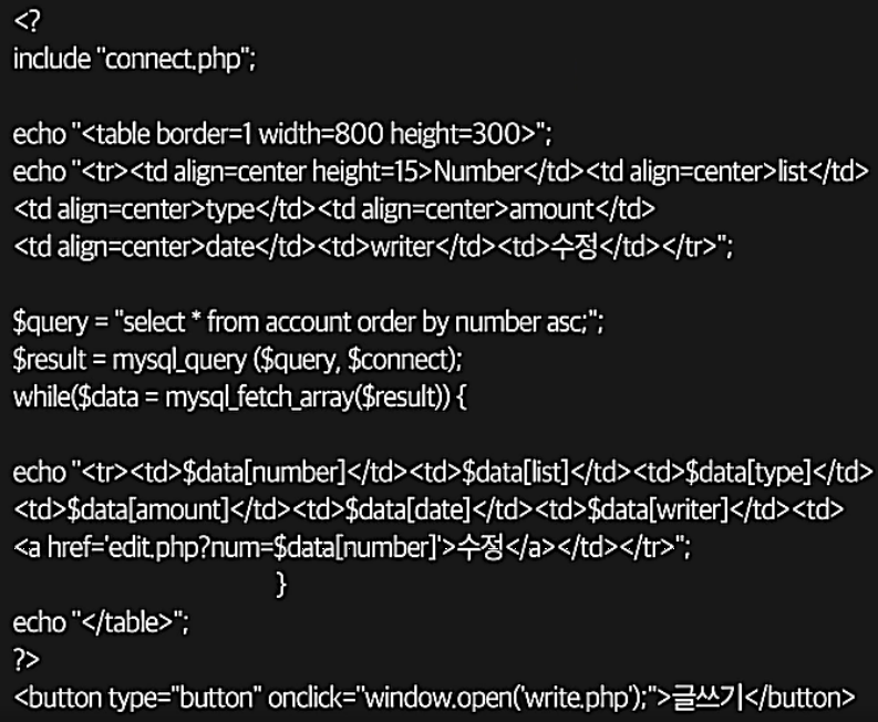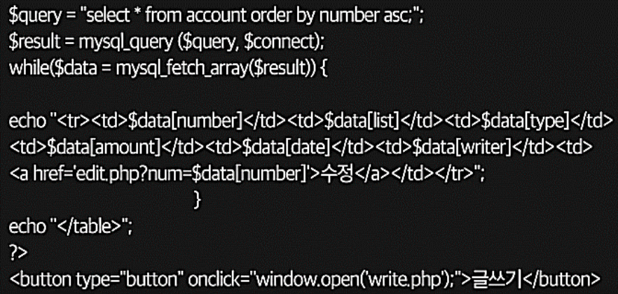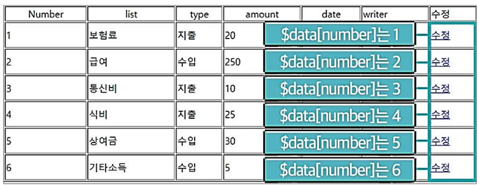 - 클릭하면 num이라는 변수에 $data[number]을 대입하여 edit.php으로 전송함