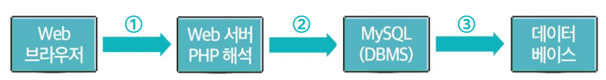 2) PHP 코드 해석 및 MySQL 관련 명령어 전달