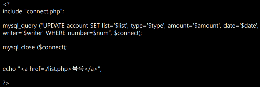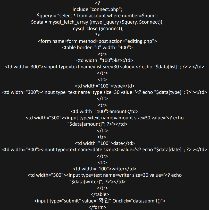 - '확인' 버튼 클릭 시 전달 부분(editing.php)