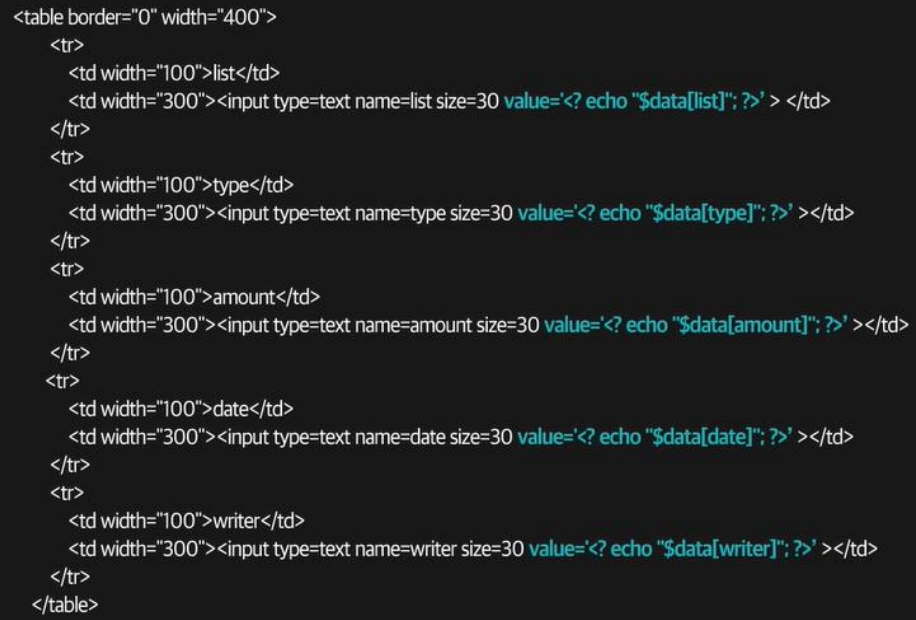 3) 데이터 호출 및 Web 페이지 출력 결과 샘플(edit.php)
