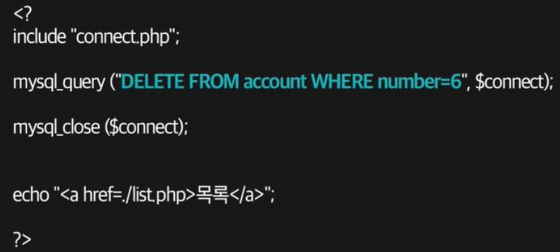 2) delete.php - 해당 항목 기존 데이터 삭제 / 쿼리 해석
