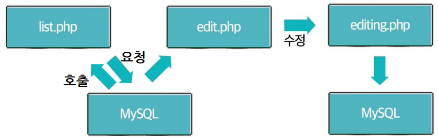 - 데이터를 수정하는 Web 페이지는 데이터를 작성하는 Web페이지 구성과 유사