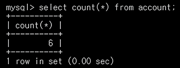ex) account 테이블의 레코드 수를 확인하고자 할 경우