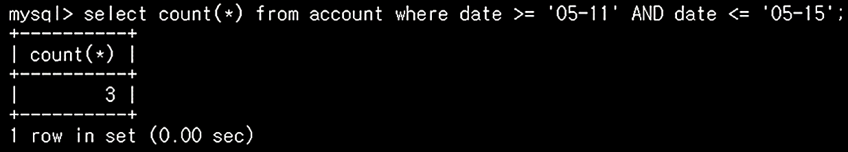 ex) 5월 11일 ~ 15일 사이 발생한 레코드의 개수를 구하고자 할 때