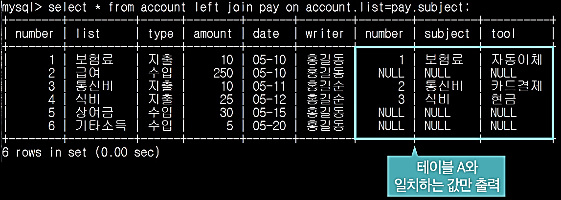 SELECT * FROM 테이블A LEFT JOIN 테이블 B