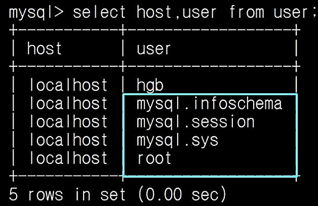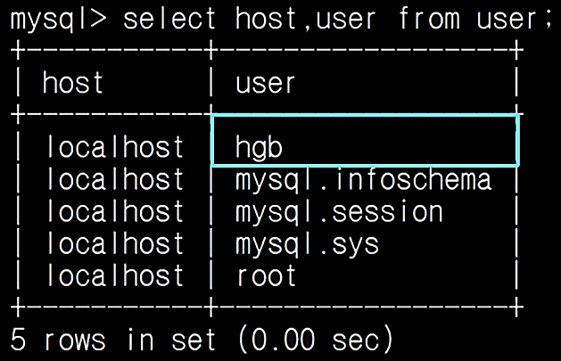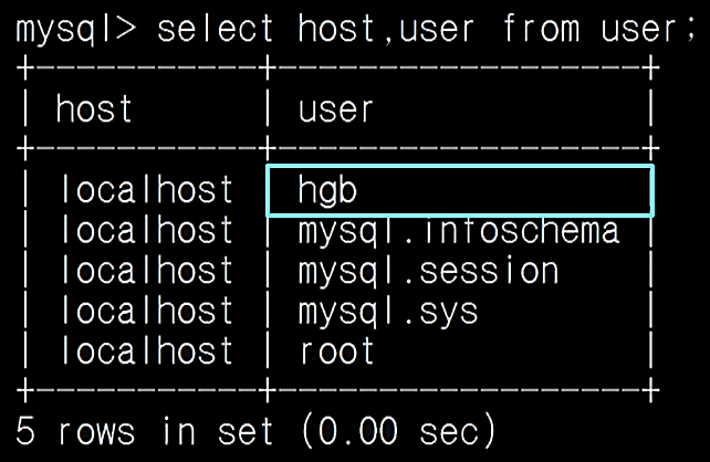 - user 칼럼 중 hgb는 추가된 임이의 사용자 계정
