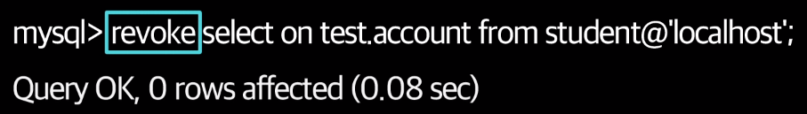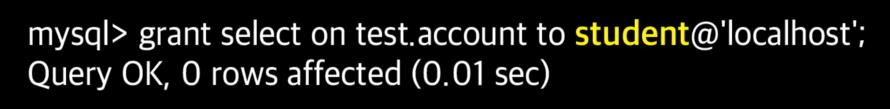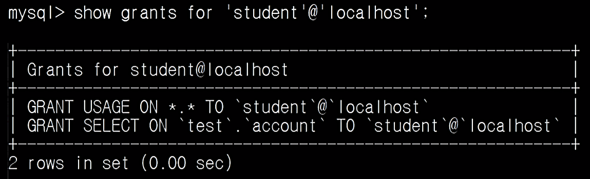 - 권한 대상은 localhost에서의 student라는 계정