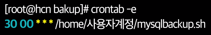 -> 매주, 매월, 매일 00시 30분마다 /home/사용자계정/mysqlbackup.sh을 실행하라는 의미