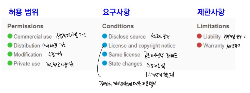 오픈소스에도 지적재산권 존재 -> 권리자 허락 없이 함부로 사용 시 소송 당할 수 있음