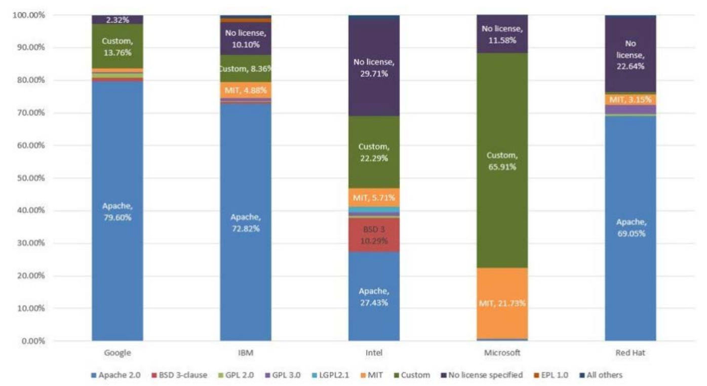 가장 많이 사용되는 10가지 라이선스 - 88% 정도 차지 (1.Apache / 2.MIT / 3.GNU ......)