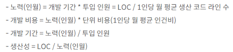 COCOMO 모형: LOC(원시 코드 라인 수)에 의한 비용 산정 기법