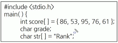 배열: 자료의 형과 크기가 동일한 변수의 모임