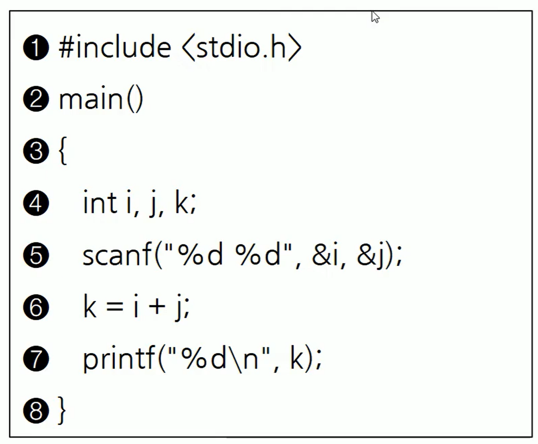 C문제 - 다음은 키보드로 6과 4를 입력받아 두 수의 덧셈 결과를 출력하는 프로그램이다. 출력 결과를 확인하시오.