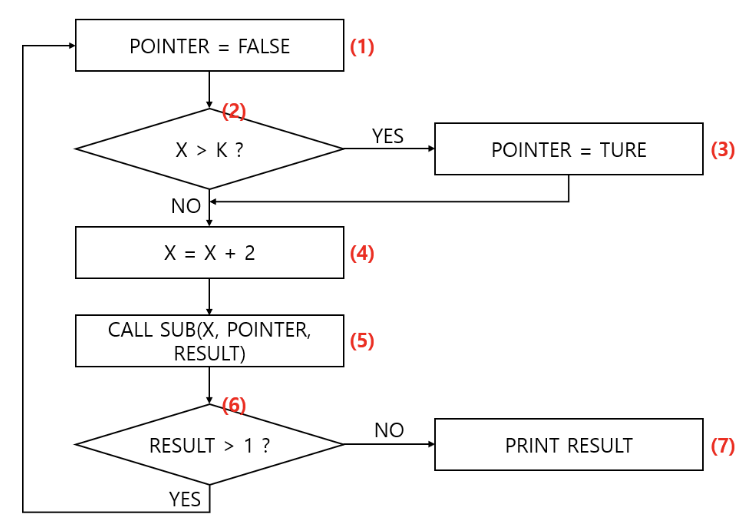 7. 다음 아래 제어 흐름 그래프가 분기 커버리지를 만족하기 위한 테스팅 순서를 쓰시오.