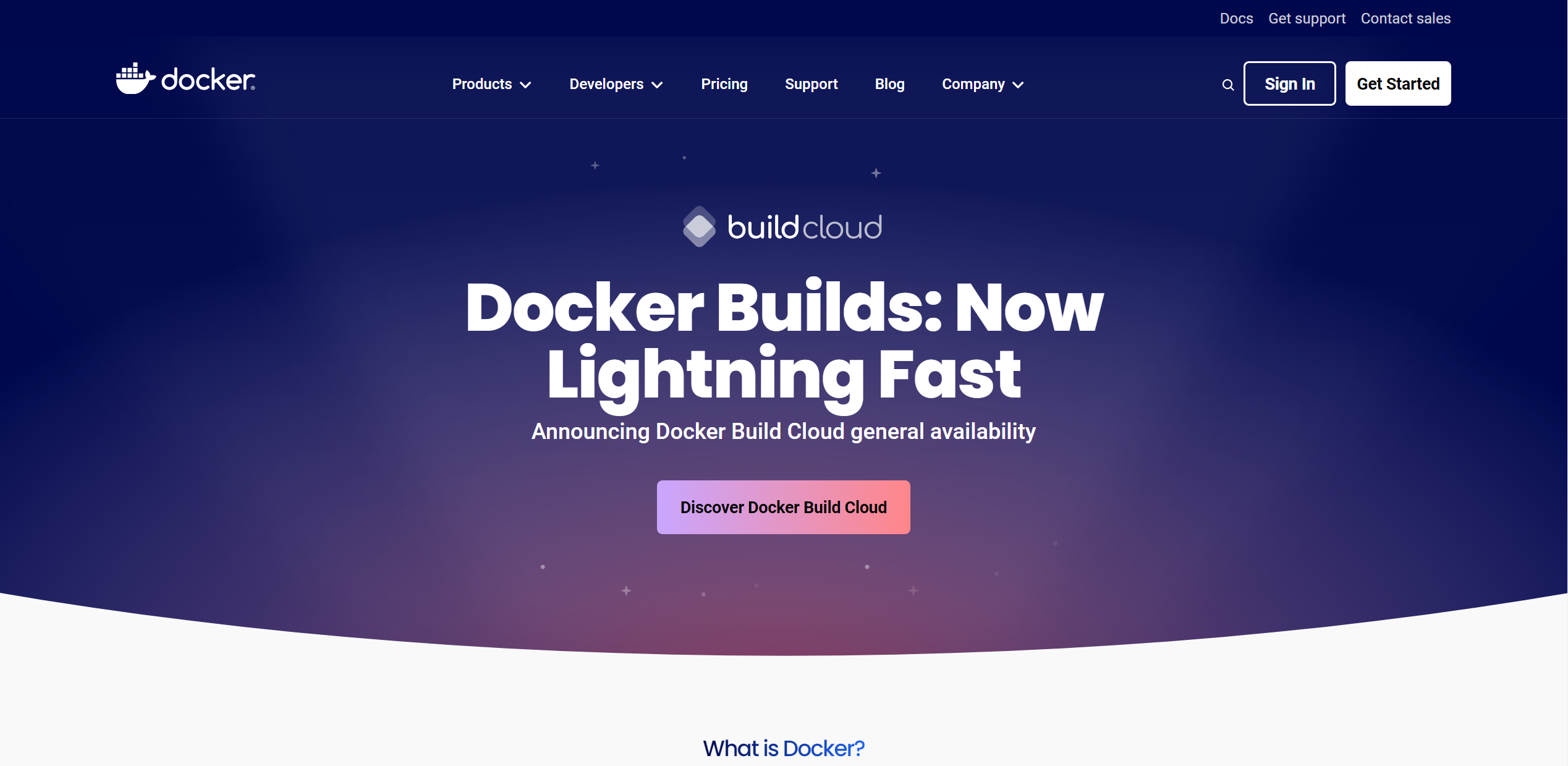 도커 공식 사이트에서 도커의 정의가 나오기 전 웹페이지