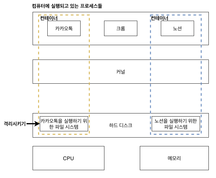 이 때 컨테이너는 격리, 격리된 컨테이너에서 각각의 프로그램이 실행