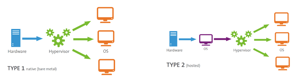 - 하이퍼바이저는 호스트 시스템에서 다수의 게스트 운영체제(OS)를 구동할 수 있게 하는 SW