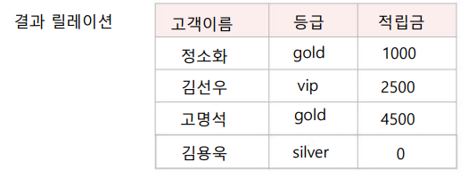 고객 릴레이션과 주문 릴레이션에 대한 조인 연산