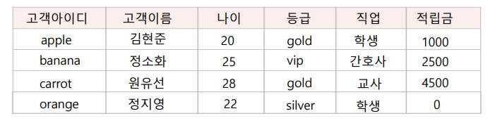 Q. 고객 릴레이션에서 등급이 gold인 튜플을 검색하시오.