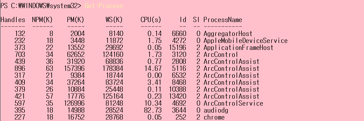 Get-Process | Format-Table: 테이블 형식으로 확인