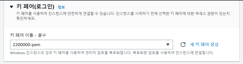 4단계: 키 선택 (키 페어 부분에서 생성한 키 선택)