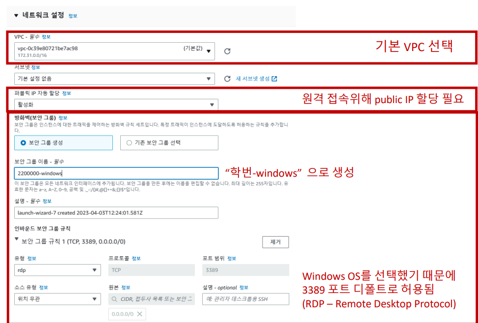 5단계: 네트워크 설정 (보안 그룹 추가)