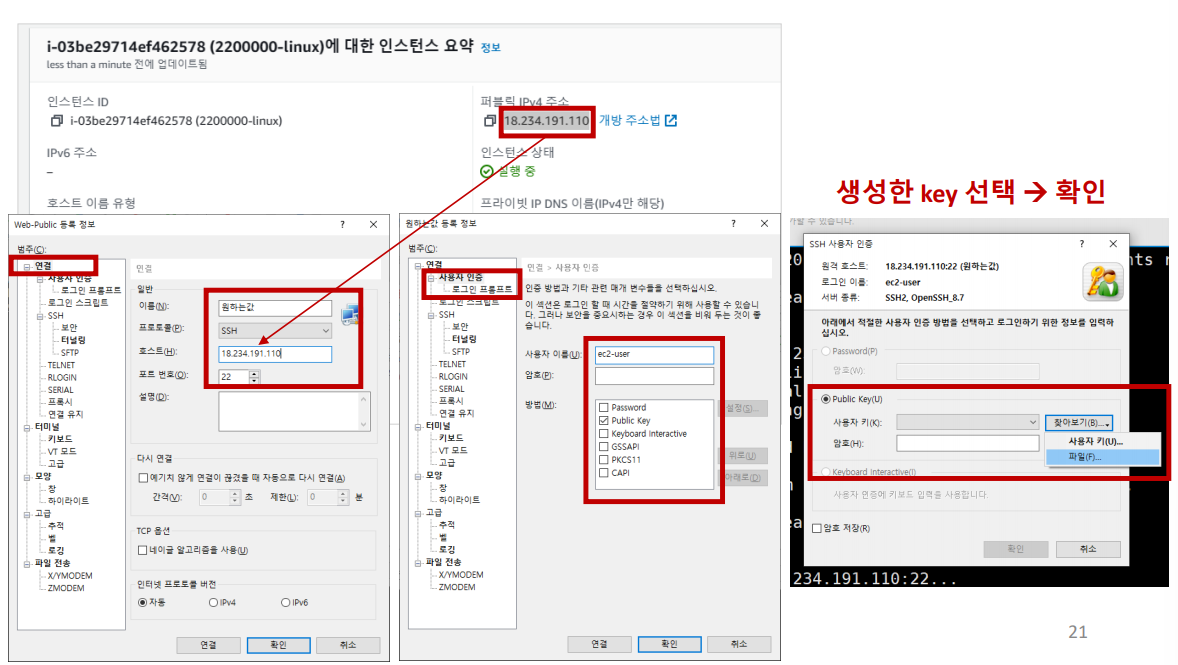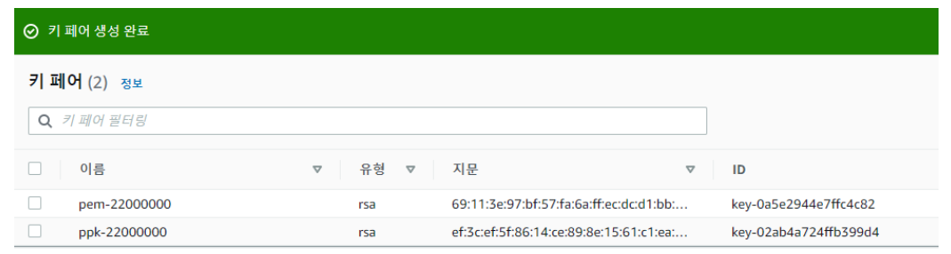 필요에 따라 키 파일 생성(pem-22000000, ppk-22000000)
