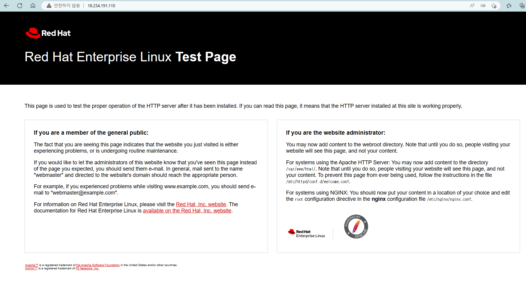 - start httpd: systemctl을 사용하여 'httpd' 서비스를 시작하라는 명령입니다. 이 명령을 실행하면 Apache HTTP Server가 실행되기 시작합니다.