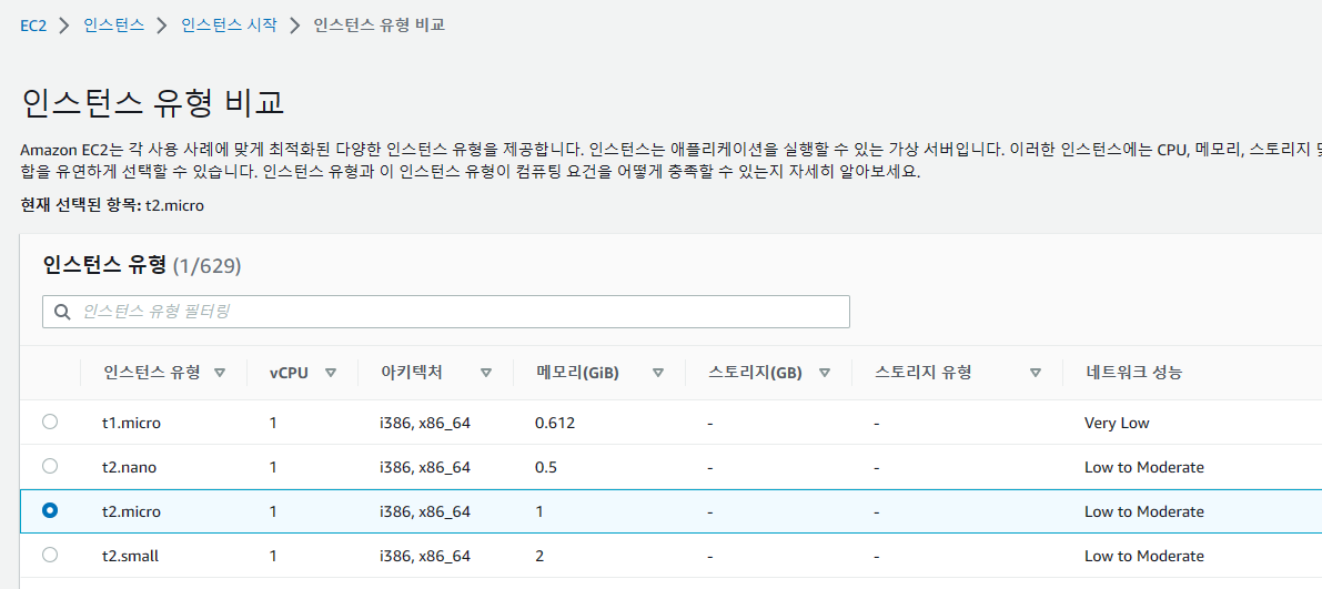 3단계: 인스턴스 유형 선택 (t2.micro) - 기본값