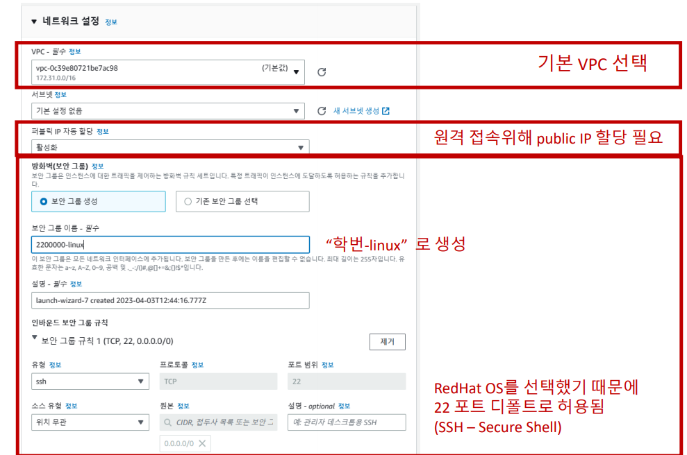 5단계: 네트워크 설정 (보안 그룹 추가)