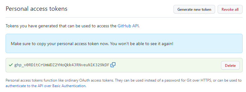 왼쪽 아래 Personal access tokens 메뉴 선택